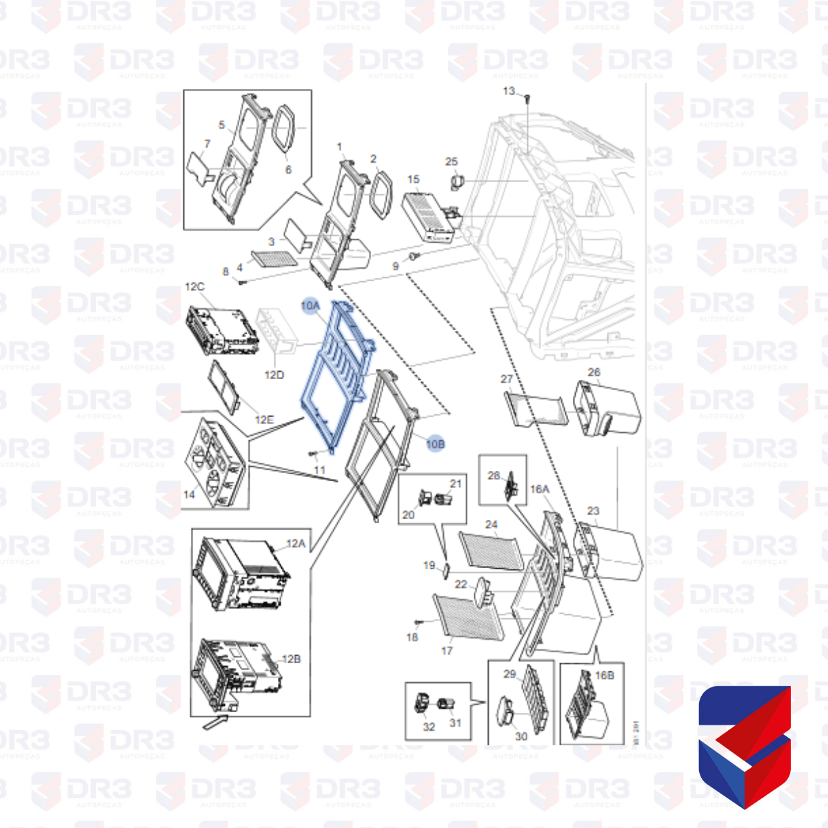 OBS: MOLDURA DO PAINEL / ESPAÇO PARA SOM E CONTROLES DO AR CONDICIONADO.