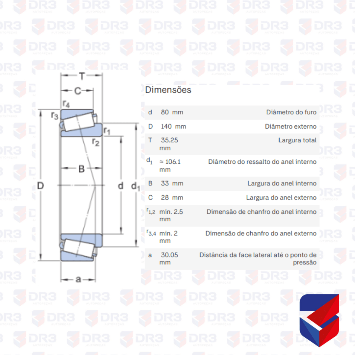 OBS: DIÂMETRO INFERIOR 80,00mm / DIÂMETRO EXTERIOR 140,00mm / LARGURA TOTAL 35,25mm / PESO 2,06kg.