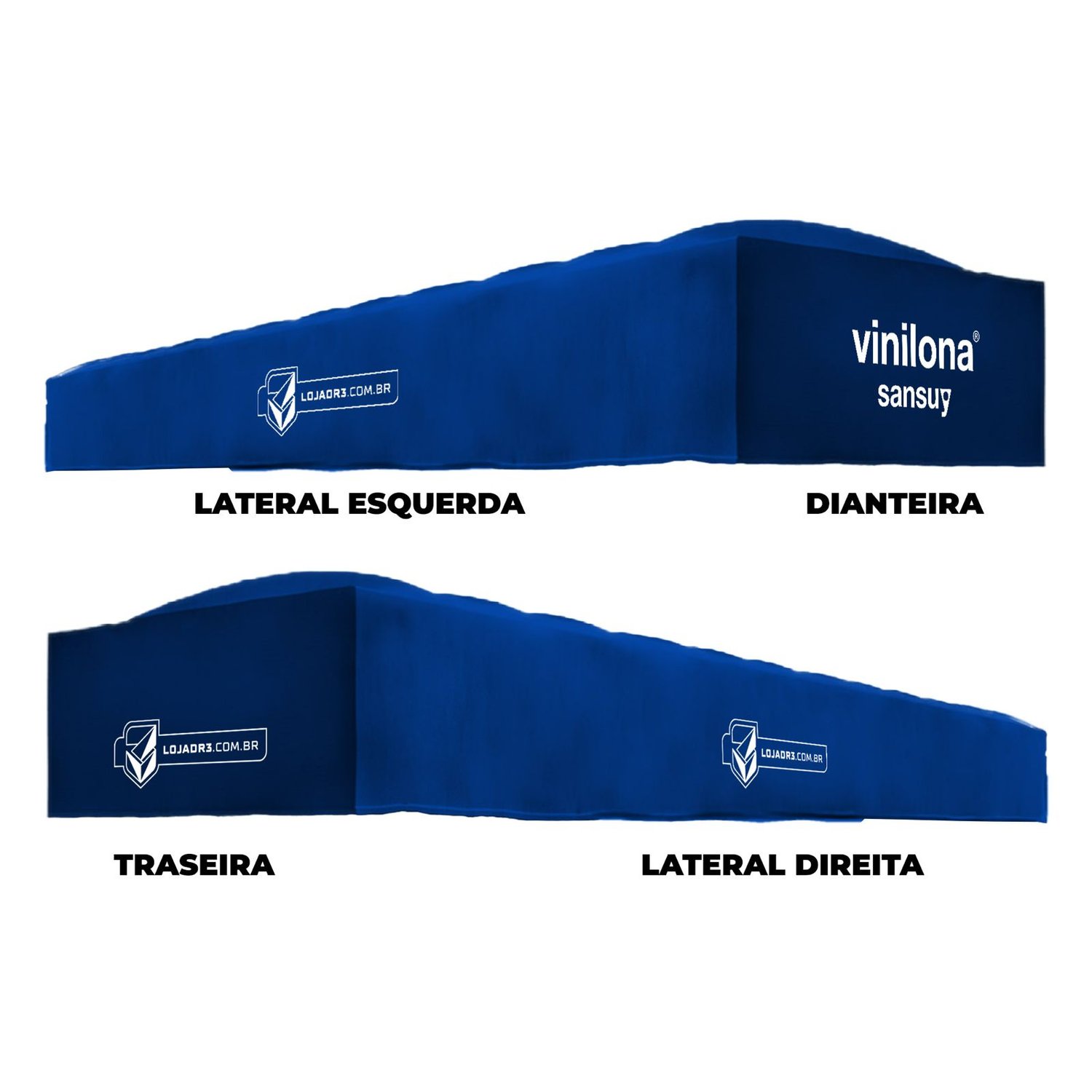 - Lona de PVC confeccionada com material de alta resistência, durabilidade e impermeabilidade;